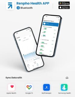- Work with Fitness App: This smart scale works with Renpho Health app, you can download it for your iOS and Android devices. Renpho Health app can easily sync with other popular fitness app: Samsung Health, Apple Health, Google Fit and offers app for Apple watch, which let you store and share your data more conveniently.