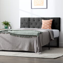 Rest Haven Eugene Upholstered Headboard with Diamond Tufting, Full, Charcoal: