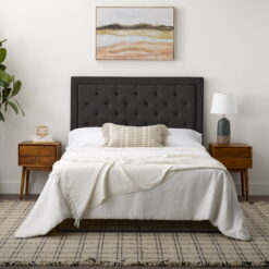 Rest Haven Medford Rectangle Upholstered Headboard with Diamond Tufting, Full, Charcoal