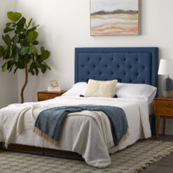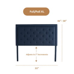 Rest Haven Medford Rectangle Upholstered Headboard with Diamond Tufting, Full, Navy
