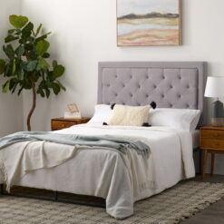 Rest Haven Medford Rectangle Upholstered Headboard with Diamond Tufting, King, Gray