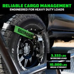Rhino USA Car Tie Down Straps with J Hooks – 4 Pack 2″ x8′ – 10,000lbs Break Strength – Heavy Duty T-Handle Car Hauler Tire Lasso Wheel Straps for Trailers, UTV & Powersports – Black