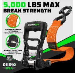 - RHINO EZ-RELEASE SYSTEM – Features a User-Friendly Design That Allows for Quick and Easy Strap Release, Enhanced by our Patented End Cap that Protects the Ratchet Mechanism, Saving Time During Loading and Unloading.