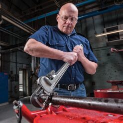 Experience strength and durability with a wrench unlike any other, the 24-inch RIDGID Aluminum Straight Pipe Wrench (catalog number 31105, model 824). Built to perform in the harshest jobsite conditions, this 24-inch straight pipe wrench accommodates all forms of pipe work with strength and accuracy with a pipe capacity of 3 inches. The full-floating forged alloy steel hook jaws provide maximum gripping power and quick ratcheting action during pipe adjustment jobs. Designed for ease of operation, the wrench features convenient self-cleaning threads as well as easily and quickly replaceable hook jaws, heel jaws, and spring assemblies. Constructed with high-quality aluminum and an easy to hold I-beam handle, it provides long-lasting strength and durability that can withstand heavy-duty and long-term use. This lightweight aluminum pipe wrench weighs only 6 pounds, making it approximately forty percent lighter than heavy-duty models while still offering all the same benefits. RIDGID is a global manufacturer of more than 300 dependable and innovative tools, trusted by the skilled trades in more than 100 countries. RIDGID products are purpose built for professionals in the evolving commercial, industrial and energy markets who install and maintain the world’s infrastructure. BUILT FOR THOSE WHO KNOW.®