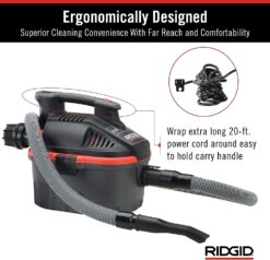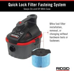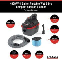 RIDGID 50313 Model 4000RV 4-Gallon Portable Wet and Dry Compact Vacuum Cleaner with 5.0 Peak-HP Motor, 4 gallon, Red