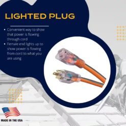 - Lighted Female Plug gives you a quick visual check to make sure power is flowing through the cord