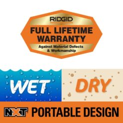- Built-in, suction-powered RIDGID SWEEP feature for sweeping in dirt and debris or gliding over spilled messes