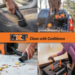 Be prepared for your next mess with the RIDGID 3 Gal. 5.0 Peak HP NXT Wet/Dry Vac – store it, stack it, move it. The compact, lightweight toolbox design is the perfect companion for those looking for a small yet powerful vac they can take from project to project. Designed with storage in mind, this 3 Gal. wet/dry vac fits into small, out-of-the-way spaces with the bonus of stacking. With the integrated storage compartment, accessories are organized and secured onboard so you are ready to grab-and-go at any time. The crevice tool can be used for tight, intricate places. The dusting brush can gently clean surfaces with care. The 6 ft., 1-7/8 in. hose features 360 maneuverability and resists collapsing. Plus, the exhaust port allows for blower functionality and the on/off switch is positioned so it can be easily turned on with 1 hand. The innovative RIDGID SWEEP feature is a suction-powered dustpan built right into the vac – sweep the dust directly into the shop vac or use it to glide over spilled areas. Backed by the full lifetime warranty, RIDGID proves that even the messiest of jobs can be the easiest to handle. Pro Tip: RIDGID filters help to maintain the power of the vac and extend vacuum life. Purchase a wet filter (VF3700, sold separately) to clean up wet messes or add a RIDGID dust bag (VF3501, sold separately) to the shop vacuum to keep the wet/dry vac drum clean and for quick pickup and disposal. 18-Volt Cordless 3 Gal. wet/dry vac unit (HD0318) also available.