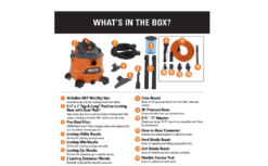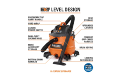 Take on projects confidently with the RIDGID 14 Gallon NXT Wet/Dry Vacuum featuring a specialized RIDGID shop vac accessory kit focused on car detailing. The RIDGID high performance auto detailing kit is included with this 14 gallon RIDGID wet/dry shop vac as a way to customize your cleaning experience to your project needs. Attach the detailing kit to the RIDGID shop vac for precision cleaning in-between the car seats, along floorboards and within cupholders. With the 14 gallon RIDGID shop vacuum, large cleanups and messes are covered with NXT level performance and power. The vacuum itself has redesigned scroll technology that increases power, suction and lift so it can handle more on the job. With a 14 gallon drum capacity, this wet/dry vacuum is the perfect option for larger jobsites where heavier and tougher messes occur – both wet and dry. Key features include built-in attachment and cord storage, 2-1/2 in. locking accessories for secure connections, and an ergonomic top carry handle for easy maneuvering of the shop vac. The blower port also allows the vac to double as a blower for leaves, grass clippings and more. Pro Tip: Add a RIDGID filter (VF5000 – sold separately) to a RIDGID shop vac to maintain the power of the vac and extend vacuum life. Add a RIDGID dust bag (VF3502 – sold separately) to the shop vacuum to help keep the wet/dry vac drum clean and for quick pickups.