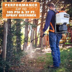 RIDGID introduces the R01501K 18-Volt 4 Gal. Backpack Chemical Sprayer Kit. This sprayer delivers 105 Gal. per charge with no pumping required. It is equipped with an adjustable flow rate knob for precise application delivering up to 105 PSI and 37 ft. spray distance. This sprayer includes 4 nozzles for versatile spraying: adjustable, flat fan, dual, and shower. The RIDGID backpack sprayer has a comfortable backpack design with padded, adjustable shoulder straps and hip harness. With a translucent tank, users can easily reference fluid level. The sprayer is ideal for use with herbicides, insecticides, fungicides, and most other lawn and garden chemicals. As always, this RIDGID 18-Volt 4 Gal. Backpack Chemical Sprayer Kit is 100% compatible with any RIDGID 18-Volt batteries. Best of all, this kit is backed by the Industry’s Best Lifetime Service Agreement, simply register within 90-days of purchase for FREE parts, FREE service, FOR LIFE. The R01501K includes the 4 Gal. Backpack Chemical Sprayer, 2.0Ah battery, charger, adjustable nozzle, flat fan nozzle, dual nozzle, and shower nozzle.