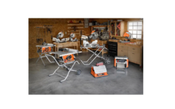 - Sliding miter fences provide support for wider material and adjusts for bevel cuts