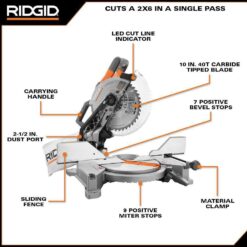 - Includes: R4113 10 in. Dual Bevel Compound Miter Saw, 10 in. Carbide Tipped Blade, Dust Bag, Material Clamp, Blade Wrench/Hex Key, and Operator’s Manual