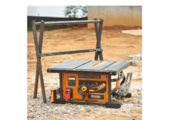 The RidgidTable Saw with Scissor Stand is a great tool for hobbyist or pro. The thought put into this saw makes it one of the best I have used. The storage on board of all accessories aids in loss prevention of these items. The telescoping fence giving additional width for ripping larger materials. I especially like the flip down tip fence for safer narrow stock ripping. The 15 amp motor seems to be sufficient while sawing harder stock. The large on & off switch is easily accessed. The stand seems to be of quality material to hold up the weight of the saw and makes it easy for transporting the saw reducing overall size. Note: Unable to search photos.
