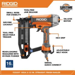 The 18 Gauge Brad Nailer and 16 Gauge Straight Finish Nailer both feature a powerful, oil-less motor, dry-fire lockout which extends the motor life and prevents marring the worksurface, and RIDGID’s innovative CLEAN DRIVE Technology. With CLEAN DRIVE Technology, users can expect reduced jams and increased productivity. While both nailers can tackle applications like baseboard, quarter round, and cabinetry, the 16 Gauge Straight Finish Nailer is great for crown molding and exterior trim.