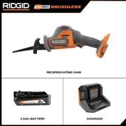 - Includes: R8648 18V SubCompact Brushless Cordless One-Handed Reciprocating Saw, Wood Cutting Saw Blade, (1) R87002 2.0 Ah Battery, (1) R86093 18V Charger, and Operator’s Manual