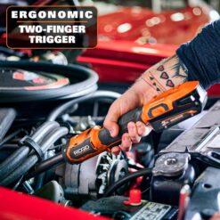 RIDGID introduces the R866020 18V Brushless 1/4 in. Extended Reach Ratchet. RIDGID’s brushless motor technology delivers maximum performance and longer runtime. This Brushless Cordless Ratchet features a powerful brushless motor that delivers superior fastening and removal speed with up to 325 RPM and 45 ft./lbs. of torque. The RIDGID Brushless 1/4 in. Extended Reach Ratchet provides up to 2X more reach to fit into more hard-to-reach places. Built with maximum productivity in mind, this RIDGID Brushless Extended Reach Ratchet is designed with an ergonomic two-finger trigger for all day use and compact enough to reach tight spaces. It features an LED light for improved visibility on the jobsite. As always, this RIDGID 18V Brushless 1/4 in. Extended Reach Ratchet is 100% compatible with all RIDGID 18V batteries. Best of all, this tool is eligible for the Industry’s Best Lifetime Service Agreement, simply register within 90 days of purchase for FREE Parts, FREE Service, FOR LIFE. The RIDGID 1/4 in. Extended Reach Ratchet includes the R866020 18V Brushless 1/4 in. Extended Reach Ratchet and Operator’s Manual. Battery and charger sold separately.
