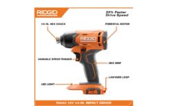 Impact Driver: 33% Faster speed of drive when compared to R86034 RIDGID 18V Impact Driver - Both tools feature LED lights for improved visibility in low light situations