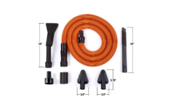 The RIDGID Wet Dry Vac Premium Car Cleaning Kit is an ideal collection of accessories for interior car cleaning. This kit features 7-pieces including a 10 ft. premium hose, soft bristle brush, stiff bristle brush, crevice tool, claw nozzle, hose-to-hose adapter, and a step down adapter (to connect 1-1/4 in. accessories to a 2-1/2 in. hose).