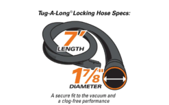 Built-in accessory storage caddy keeps accessories organized and close by for easy access - 7 ft. Tug-A-Long hose has a locking connection that won’t pull loose during use