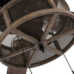 Add an industrial farmhouse feel to your room with the River of Goods lighted ceiling fan. Featuring a rustic distressed barnwood caged metal that encases the brown metal mesh and exposes the 2 LED bulbs (included) to best illuminate your room; woodgrain reversible blades in distressed rich brown finish, while the opposite side features a lighter driftwood brown color, this fan offers a modern aesthetic. Three fan speeds and a reversible switch help keep you comfortable year-round. In warm weather, run the fan counterclockwise to stay cool. In cold weather save money by reversing the ceiling fan direction to push warm air down.