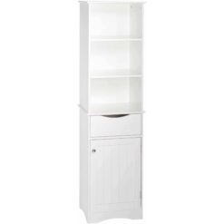 Show off style and your bathroom essentials with this tall multi-purpose cabinet from RiverRidge Home Ashland Collection Tall Cabinet. Conceal clutter behind the door and display your home decor or bathroom essentials on the 3 open shelves. A perfect addition to your bathroom, laundry room, or mudroom.