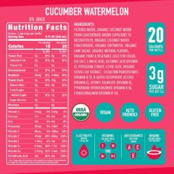 Filtered Water, Organic Coconut Water From Concentrate (Water Sufficient to Reconstitute, Organic Coconut Water Concentrate), Organic Erythritol, Organic Cane Sugar, Organic Natural Flavors, Organic Fruit & Vegetable Juice for Color, Sea Salt, L-Malic Acid, Ascorbic Acid (Vitamin C), Potassium Citrate, Citric Acid, Organic Stevia Leaf Extract, D-Calcium Pantothenate (Vitamin B-5), D-Alpha-Tocopheryl Acetate (Vitamin E), Retinyl Palmitate (Vitamin A), Pyridoxine Hydrochloride (Vitamin B-6), Cyanocobalamin (Vitamin B-12).