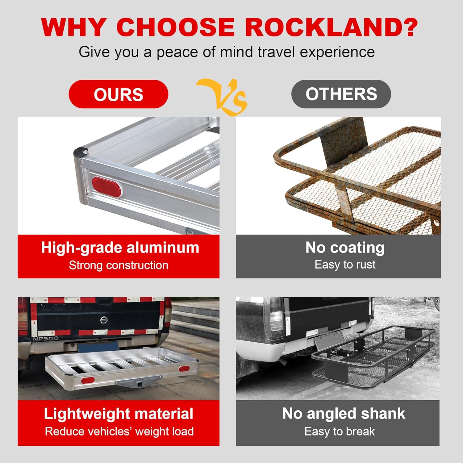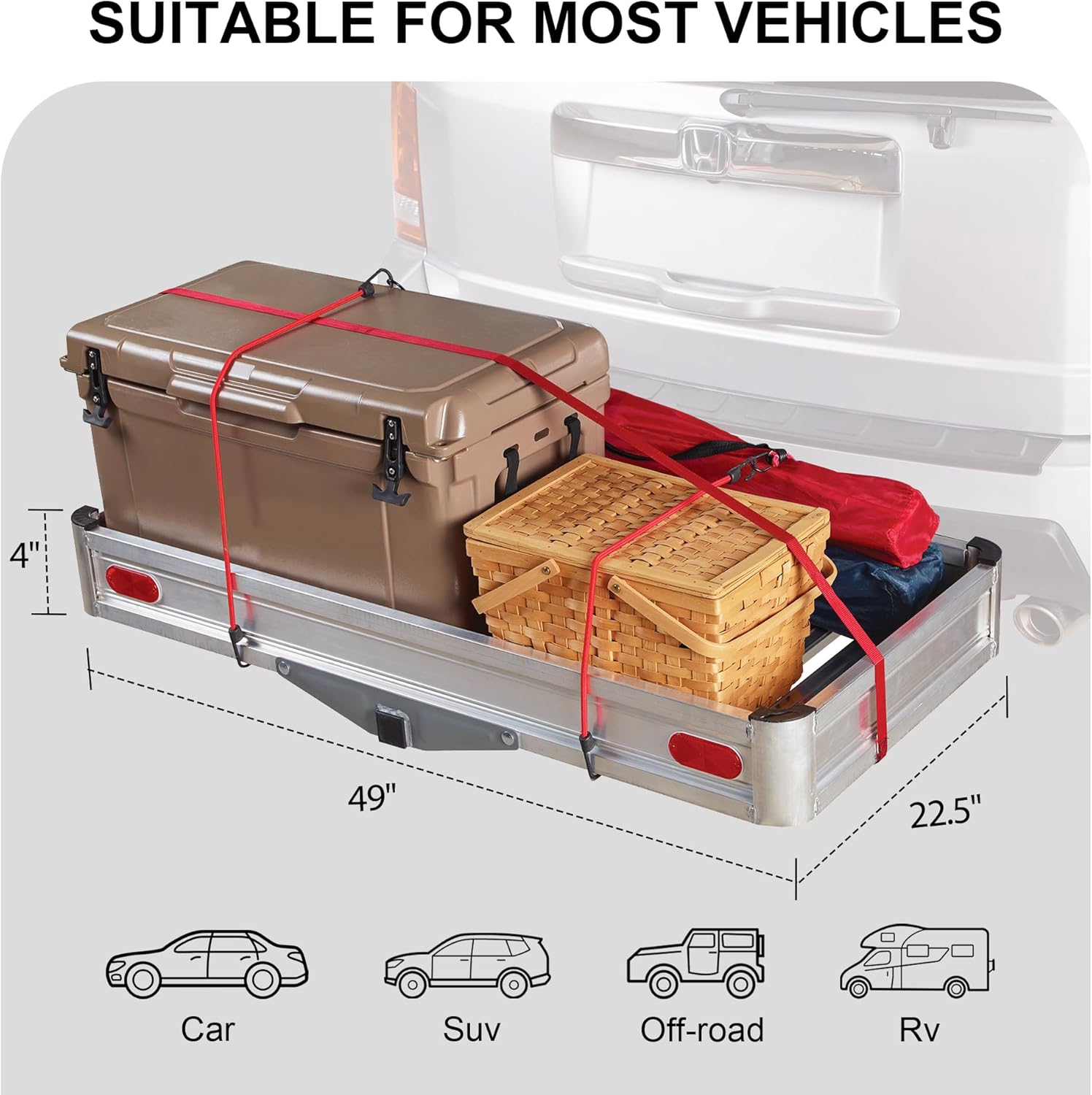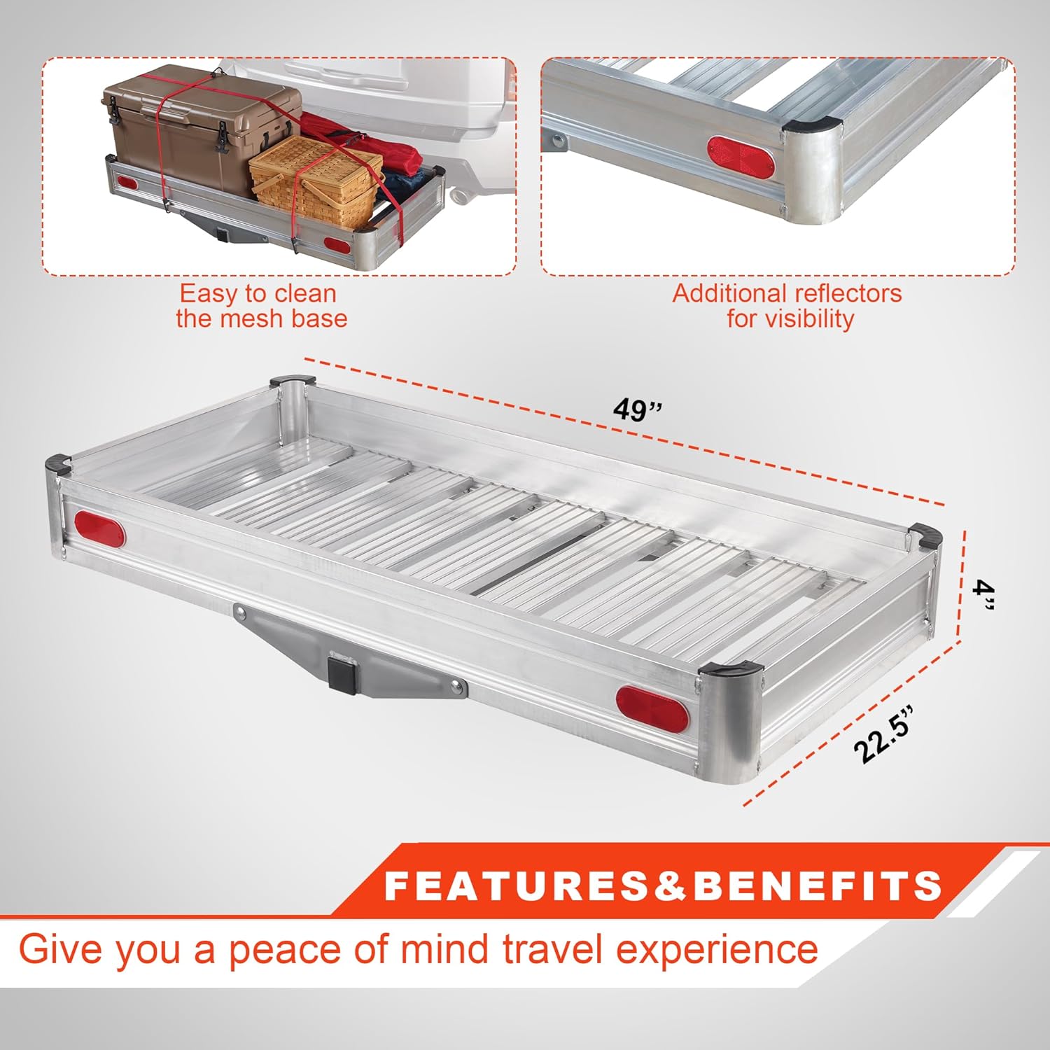 Rockland Aluminum Hitch Cargo Carrier – 500-lb Load Capacity, Trailer Cargo Carrier Hitch Mount for RV’s, Trucks, SUV’s, Vans, Cars with 2″ Hitch Receiver, 49” x 22.5” x 4”