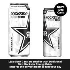 Rockstar Energy Drink, Pure Zero Silver Ice, 12oz Sleek Cans (8 Pack)