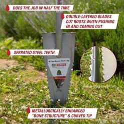 - The Root Assassin serrated shovel can help you accomplish various gardening tasks faster than other conventional gardening tools; The enhanced shovel shape and curved tip with serrated edges are perfect for slaying roots and weeds
