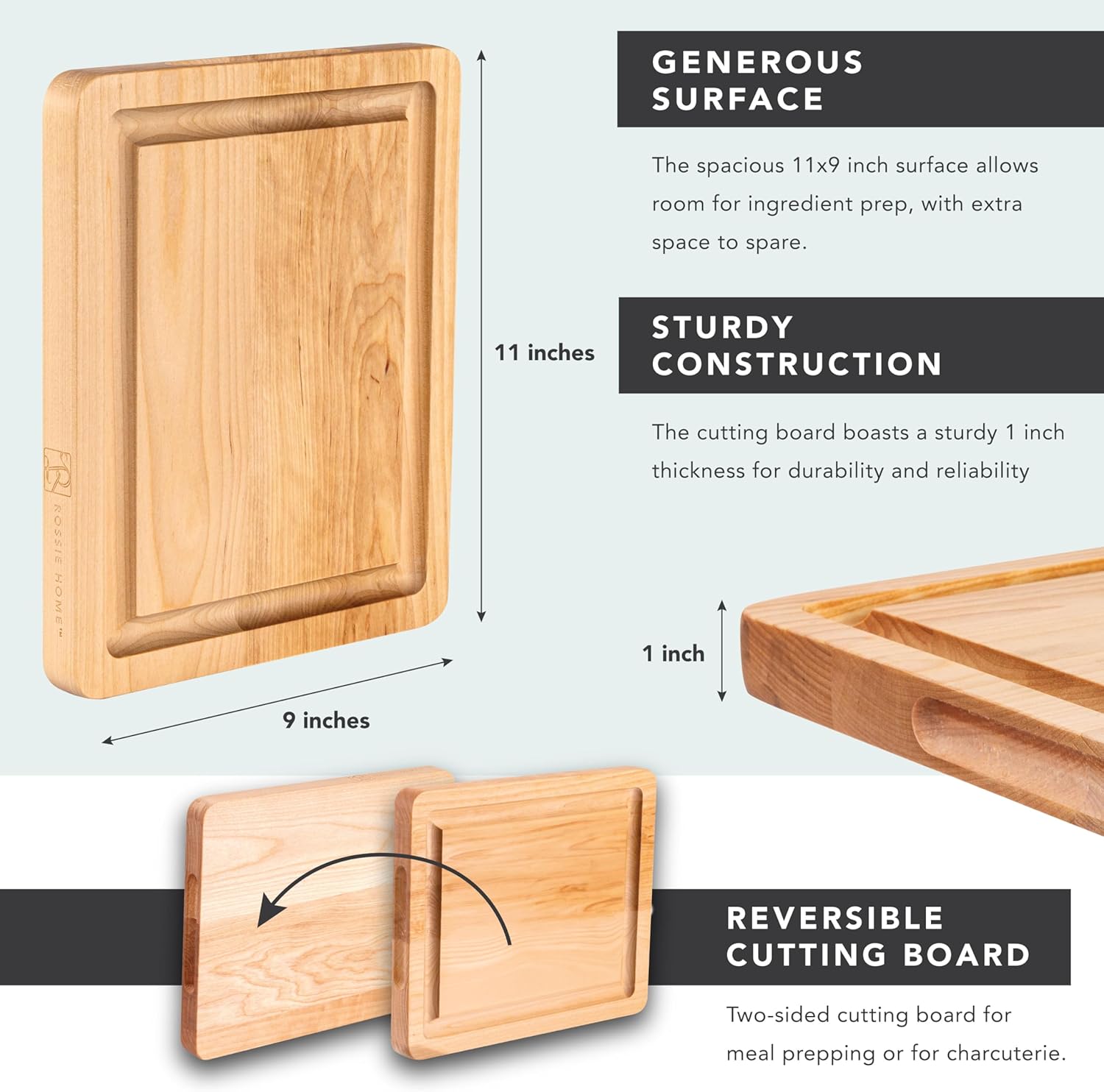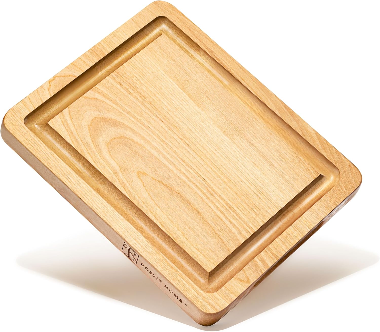 ROSSIE HOME Wood Cutting Board, Heavy-Duty, Pre-Oiled, Reversible Charcuterie Board with Juice Groove and Carrying Handles for Kitchen – Blonde Maple – 11×9 Inch – Style No. 60521