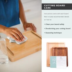 - Care Instructions: Preserve these cutting boards by handwashing with mild soap and warm water. Periodic oiling with food-grade mineral oil maintains the wood’s integrity, ensuring a durable and beautiful kitchen accessory.