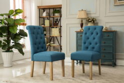 Bring a touch of elegance into your home with the Roundhill Furniture Habit Solid Wood Tufted Parsons Dining Chair. Built to last, this tan-colored chair is made of linen-look polyester fabric stretched on a solid hardwood frame. This set of two dining chairs is deeply button-tufted for a tailored look that will accent any kitchen or dining room. The armless and high-backed chair has a slightly curved design, and its soft seat and back are thickly cushioned for a more comfortable seating experience. It features durable, solid wood legs that are finished in a white-wash light oak color to match the chair’s unique style. This set is ideal if you are looking to upgrade your dining room to include something cozier. It will inspire long dinner conversations that last well into dessert. These Roundhill Furniture dining chairs are available in a variety of upholstery colors to ensure that you find the right style that suits your room’s decor.