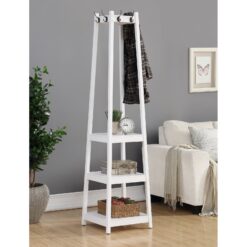 Roundhill Furniture Vassen 3-Tier Storage Shelve Coat Rack, White