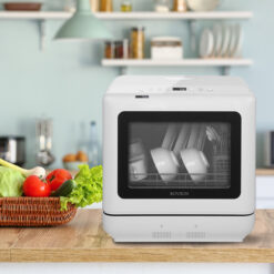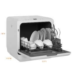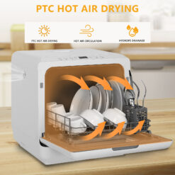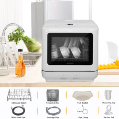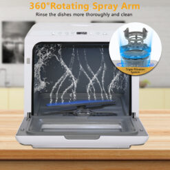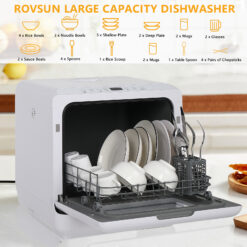 ROVSUN Portable Countertop Dishwasher, Mini Dishwasher with 5 Washing Programs, 5L Built-in Water Tank, 360° Spray Arms, Air-Dry Function & Fruit Cleaning for Apartments, Dorms and RVs (White)