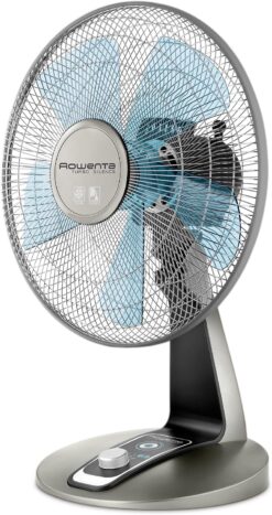 Rowenta Turbo Silence Table Fan 18 Inches Ultra Quiet Fan Oscillating, Portable, 4 Speeds, Manual Turn Dial, Indoor VU2531, Bronze