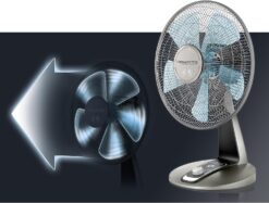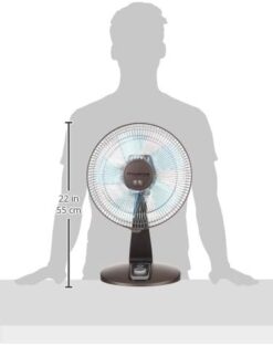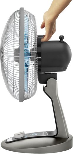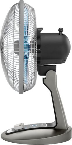 - 4-speed desk fan with 12-inch oscillating head and manual control dial