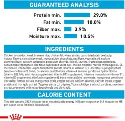 Chicken by-product meal, brewers rice, chicken fat, wheat gluten, corn, dried plain beet pulp, natural flavors, corn gluten meal, monocalcium phosphate, pea fiber, vegetable oil, sodium aluminosilicate, calcium carbonate, potassium chloride, fish oil, taurine, fructooligosaccharides, sodium tripolyphosphate, rice flour, hydrolyzed yeast, salt, choline chloride, marine microalgae oil, DL-methionine, vitamins[DL-alpha tocopherol acetate (source of vitamin E), L-ascorbyl-2-polyphosphate (source of vitamin C), biotin, D-calcium pantothenate, vitamin A acetate, pyridoxine hydrochloride (vitamin B6), folic acid, niacin supplement, vitamin B12 supplement, thiamine mononitrate (vitamin B1), vitamin D3 supplement, riboflavin supplement], trace minerals[zinc proteinate, manganese proteinate, zinc oxide, ferrous sulfate, manganous oxide, copper sulfate, sodium selenite, calcium iodate, copper proteinate], marigold extract (Tagetes erecta L.), L-lysine, Yucca schidigera extract, carotene, rosemary extract, preserved with mixed tocopherols and citric acid.