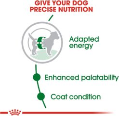 | Directions | Royal Canin Small Adult dry dog food (formerly Mini Adult) is precise nutrition specifically made for small dogs 10 months to 8 years old weighing 9–22 lbs. |