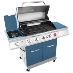 - Strong Performance: This stylish gas grill has 4 main burners (10,000 BTU each), a sear burner (14,000 BTU), an rear burner (10,000 BTU) and a lidded side burner (10,000 BTU). 7 high power burners deliver a total of 74,000 BTU output.