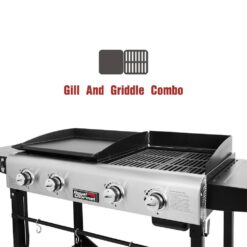 - Combo design: combination of gas grill and griddle with 2 individual cooking zones, each 292 sq. in., totaling 584 sq. in. of cooking space