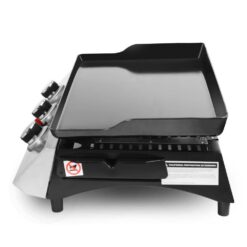 Stop manhandling those heavy, bulky backyard griddles and show off as grill master with Royal Gourmet PD1300 3-Burner Portable Gas Griddle for your family outings. This griddle has 3 round, stainless-steel burners, which provide a total of 27,000 BTUs output. It comes equipped with a porcelain enameled griddle top which offers 326 square inches of cooking area. Large space are perfect for frying rice, eggs, hash browns, French toast, bacon and hamburgers. Durable stainless-steel control panel with piezo ignition system enables quick start-up, making barbecue easier than ever before. Large oil cup collects grease residue for easy cleanup after use every time. The portable design provides much convenience for picnics, tailgate party, camping, or nights BBQ on the patio.