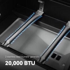 - 2 stainless steel burners on the gas grill side generate 20,000 BTU in total with the automatic ignition system which is super easy to operate without the need for a battery; a simple push of the button ignites the burners instantly every time.
