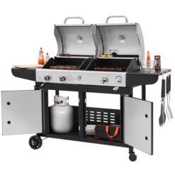 - 2-in-1 Combo Design: Gas or charcoal cooking, both are available with this versatile Gas and Charcoal Combo Grill