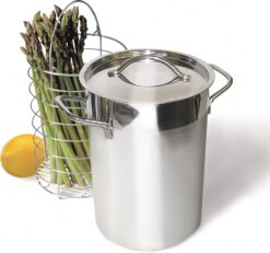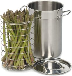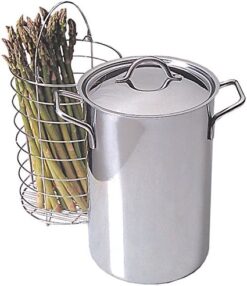 - CONVENIENT DESIGN: Features a chromed wire steamer basket, allowing the asparagus to stand up right