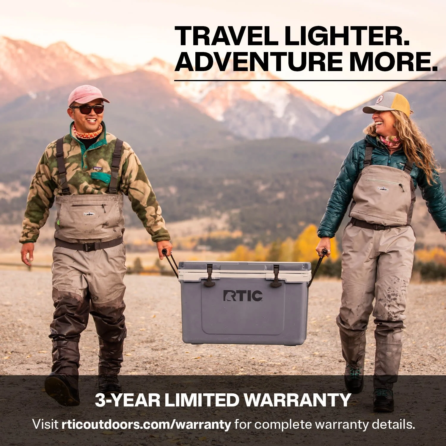 RTIC’s 52 QT Ultra-Light Cooler is built light and strong for the long haul. Made with RTIC’s unique Ultra-Light design, this injection-molded cooler is 30% lighter than rotomolded coolers with similar capacity. With up to 3″” of closed-cell foam insulation this cooler keeps contents cold for up to 7 days when following RTIC’s cooling tips. This 52 quart coolers holds up to 76 cans. Easy to carry with marine-grade rope handles. Non-skid rubber feet keep it steady, while molded tie-down slots secure it in place. Dual Rapid V-Drain holes allow hands-free draining, and integrated lock holes with a 5/8″” shackle fit keep your contents safe wherever your adventures take you.