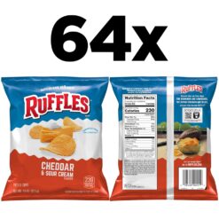 Ruffles Potato Chips, Cheddar & Sour Cream, 1.5 Ounce (Pack of 64)