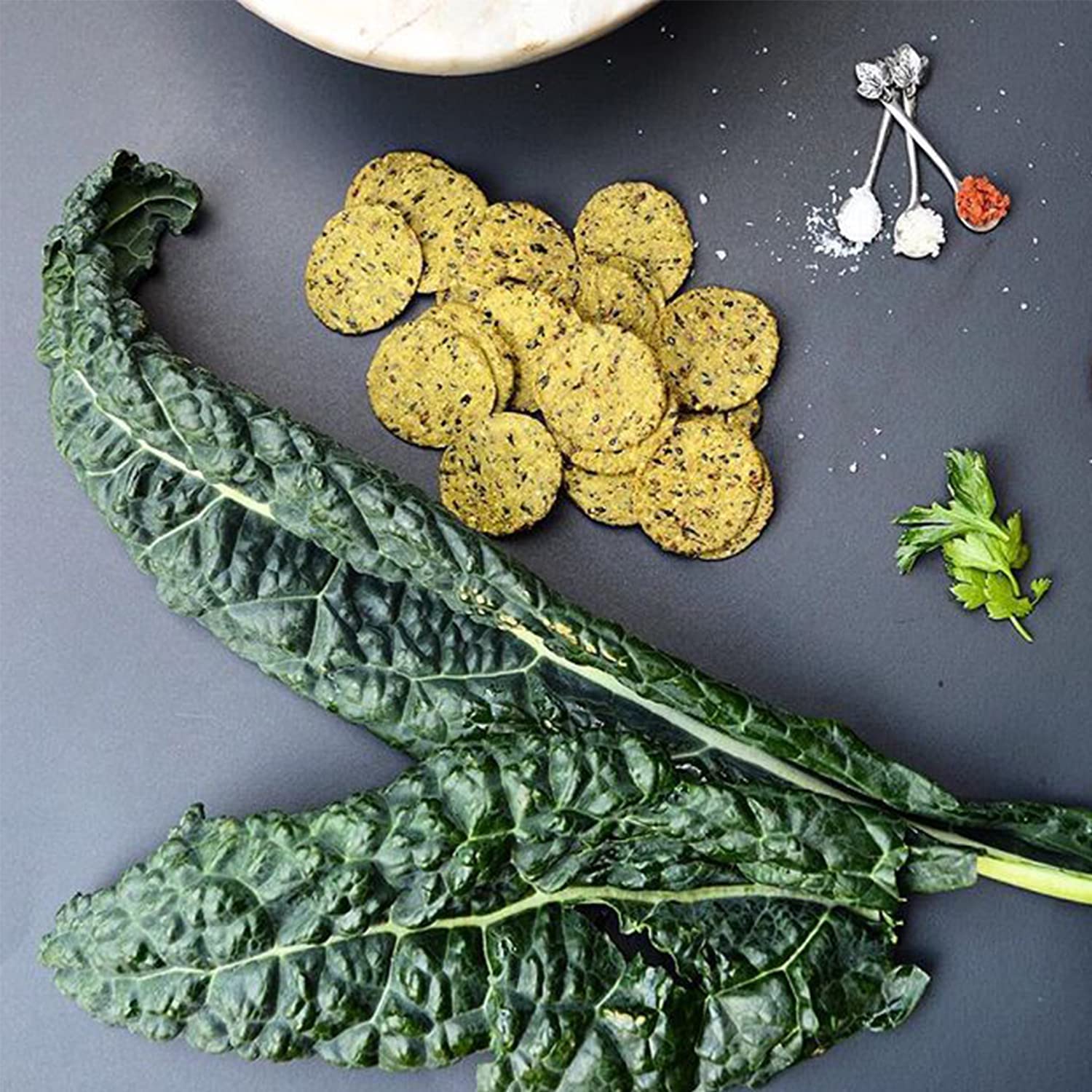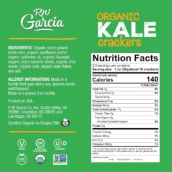 Organic stone ground white corn, organic sunflower oil and/or organic safflower oil, organic flaxseed, organic black sesame seeds, organic chia seeds, organic kale, organic kale flakes, sea salt