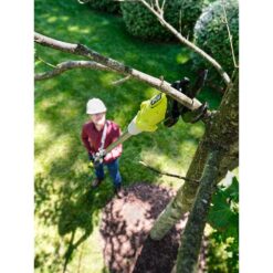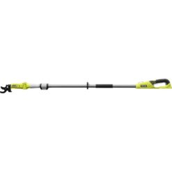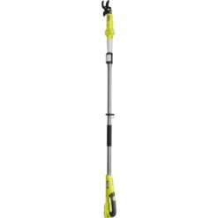 Tackle those hard to reach cutting areas with the RYOBI 18V Cordless Pole Lopper which replaces manual pruning with just the pull of a trigger. The telescoping pole extends up to 9′ for extended reach, and the 5-position pivoting head allows for cutting at all angles. The bypass blades give clean, complete cuts up to 1 ¼” in diameter. For user convenience, there is a branch hook for easy branch removal along with a soft grip handle for added comfort. The RYOBI 18V Cordless Pole Lopper is compatible with all RYOBI 18V ONE+ batteries. This tool is backed by a 3-year warranty. Battery and charger not included.