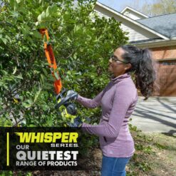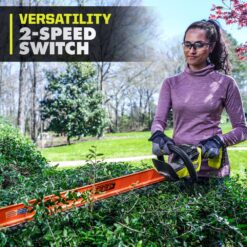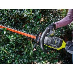 The RYOBI 24 in. 18V ONE+ HP Hedge Trimmer is ideal for any hedge maintenance around the house. The Whisper Series Technology provides all the power, without the noise, allowing users to work any time of day. The premium HP brushless motor provides more power, longer runtime and a longer motor life. The ONE+ Hedge Trimmer is lighter than ever before. The included durable magnesium gear box and still gives you the power you would expect from higher voltage lines. This trimmer features a 2-speed switch for optimal power while trimming. The 24 in. dual-action blades and a 1 in. cut capacity allow this hedge trimmer to handle even the toughest hedges. This trimmer has a wrap-around front handle and an ergonomic rear handle for added comfort. Featuring the innovative HEDGESWEEP design that clears clippings and debris while you trim. This tool is backed by a 3-Year Limited Warranty.