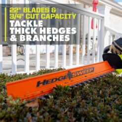 - Tackle thick hedges and branches with 22″ blades and a 3/4″ cut capacity